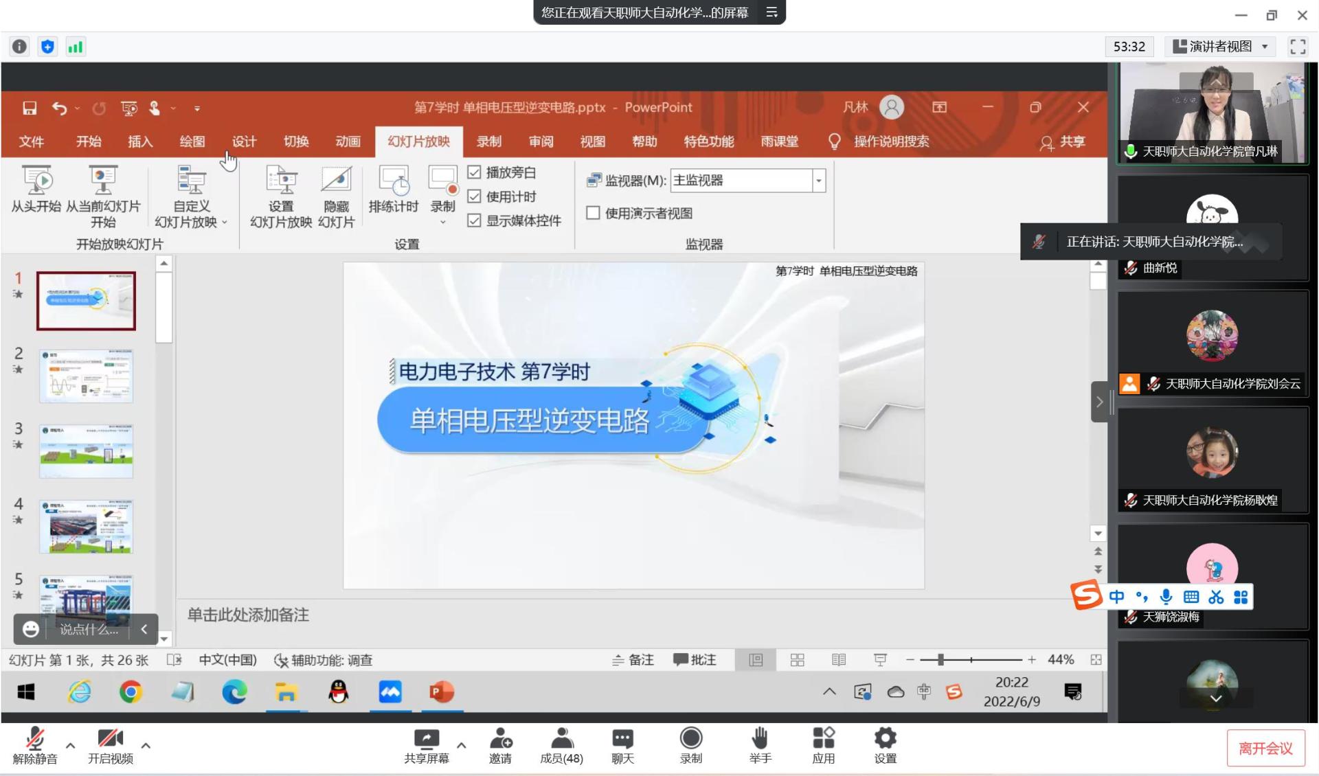 曾凡是琳教员以《电力电子技能》中“单相电压型顺变电道”为例,启展示场讲课,为天狮医教院博业教员显示了1场出色的树模课,瓜分正在《电力电子技能》课程中怎样融进课程念政元素。
